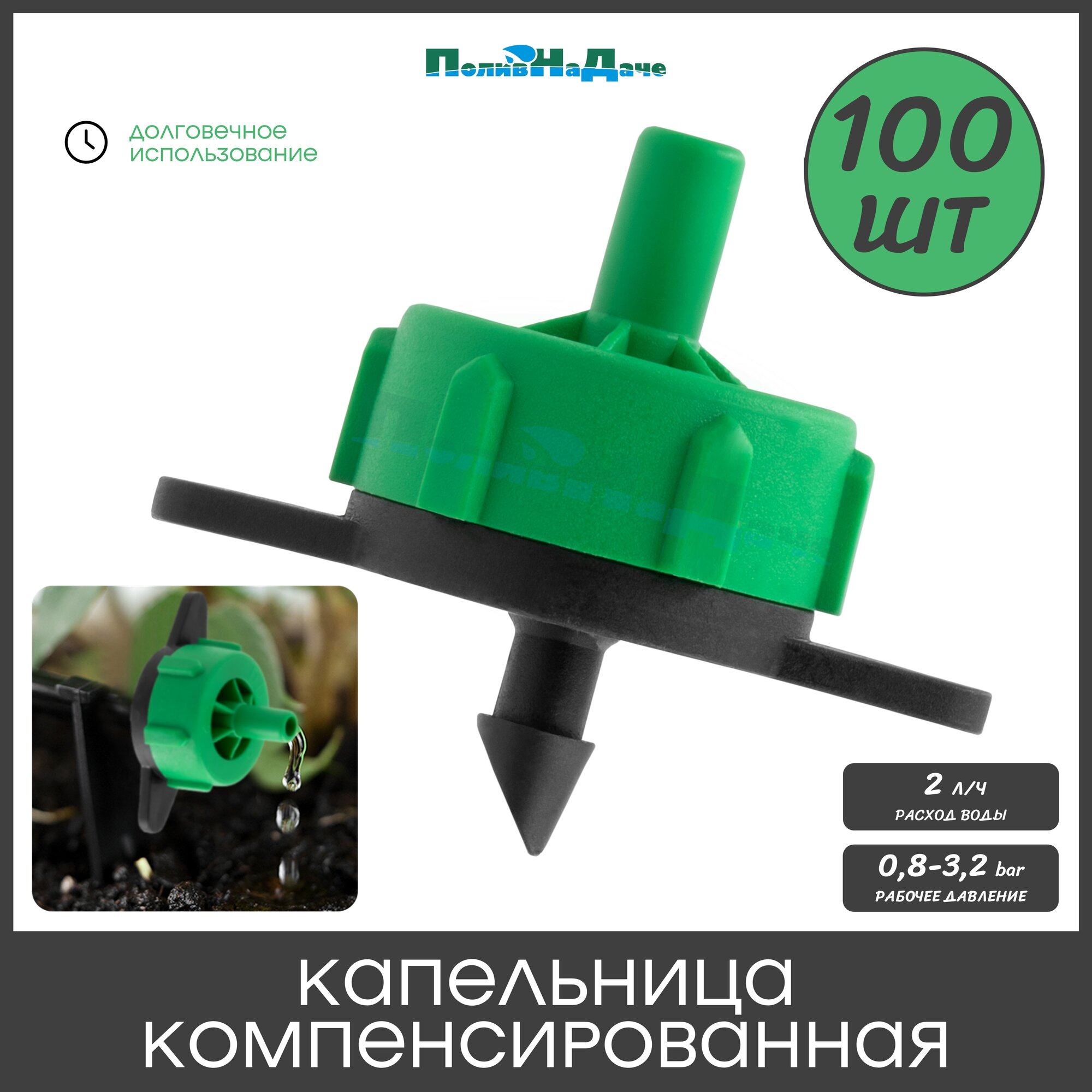 Капельница компенсированная разборная, 1/4", Зелёная, 2л/ч - 0,8-3,2 bar - 100шт (PCT0102.P)