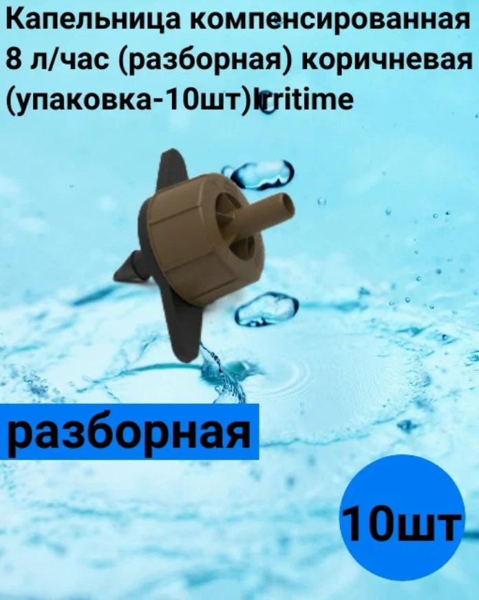 Капельницы Irritime компенсированные, с коннектором, 8л/час, 10шт, коричневые интересное: