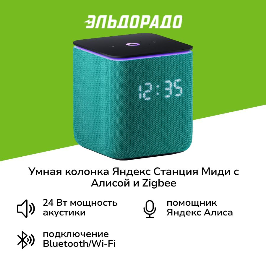 СохранитьУмная колонка Яндекс Станция Миди с Алисой на YaGPT, с Zigbee, изумрудный (24Вт) (YNDX-00054EMD) интересное:
