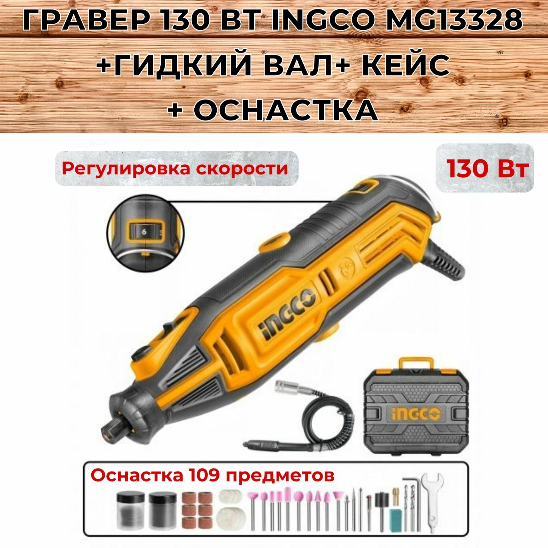 Гравер электрический INGCO MG13328 130 Вт, 10000-35000 об. мин, Кейс, оснастка 109 предметов интересное: