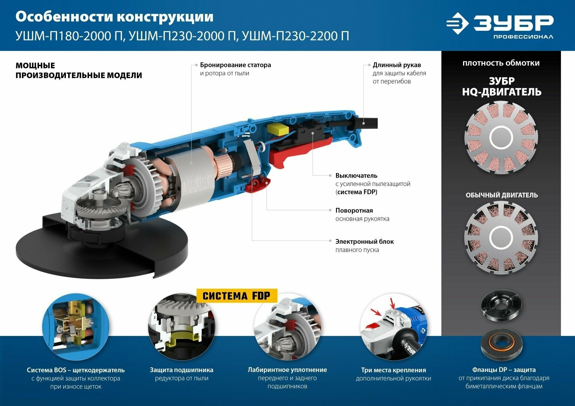 СохранитьЗУБР 2000 Вт, d180 мм, УШМ, Профессионал (УШМ-П180-2000 п) интересное: