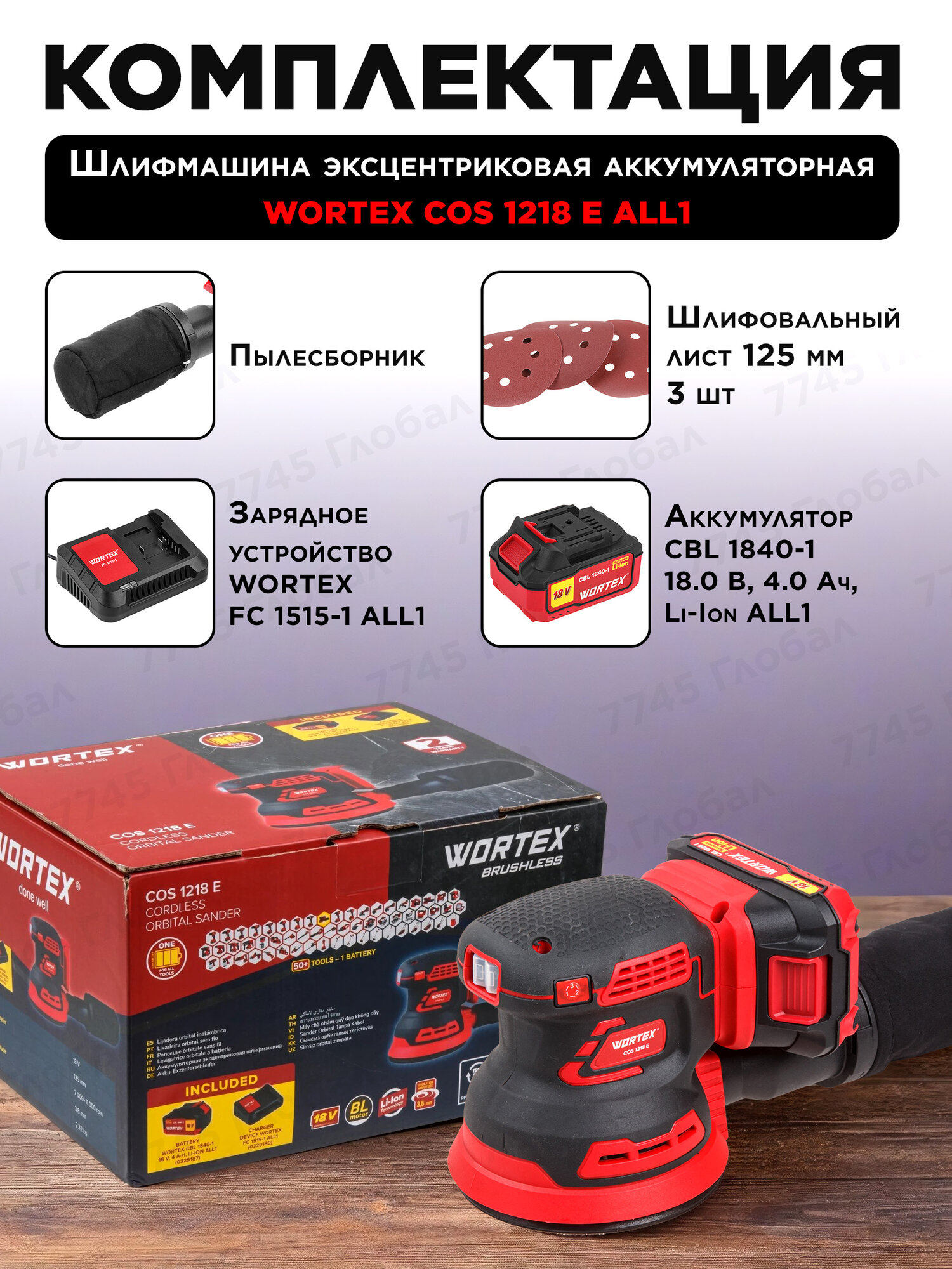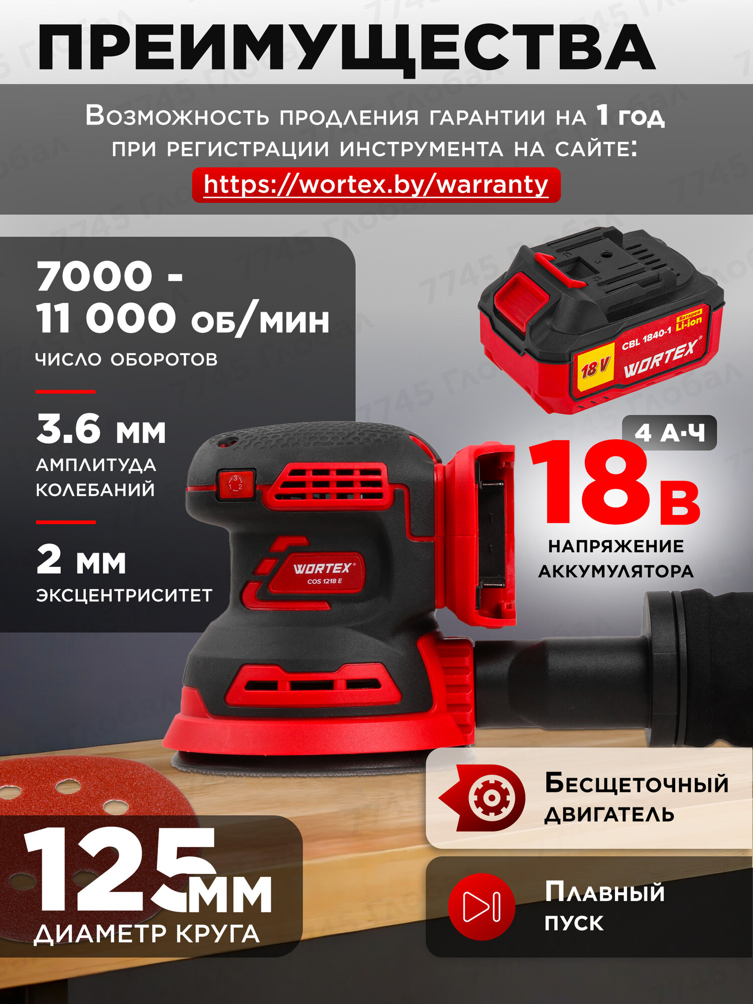 Шлифмашина эксцентриковая (орбитальная) аккумуляторная WORTEX COS 1218 E XLT SET (1334403) интересное: