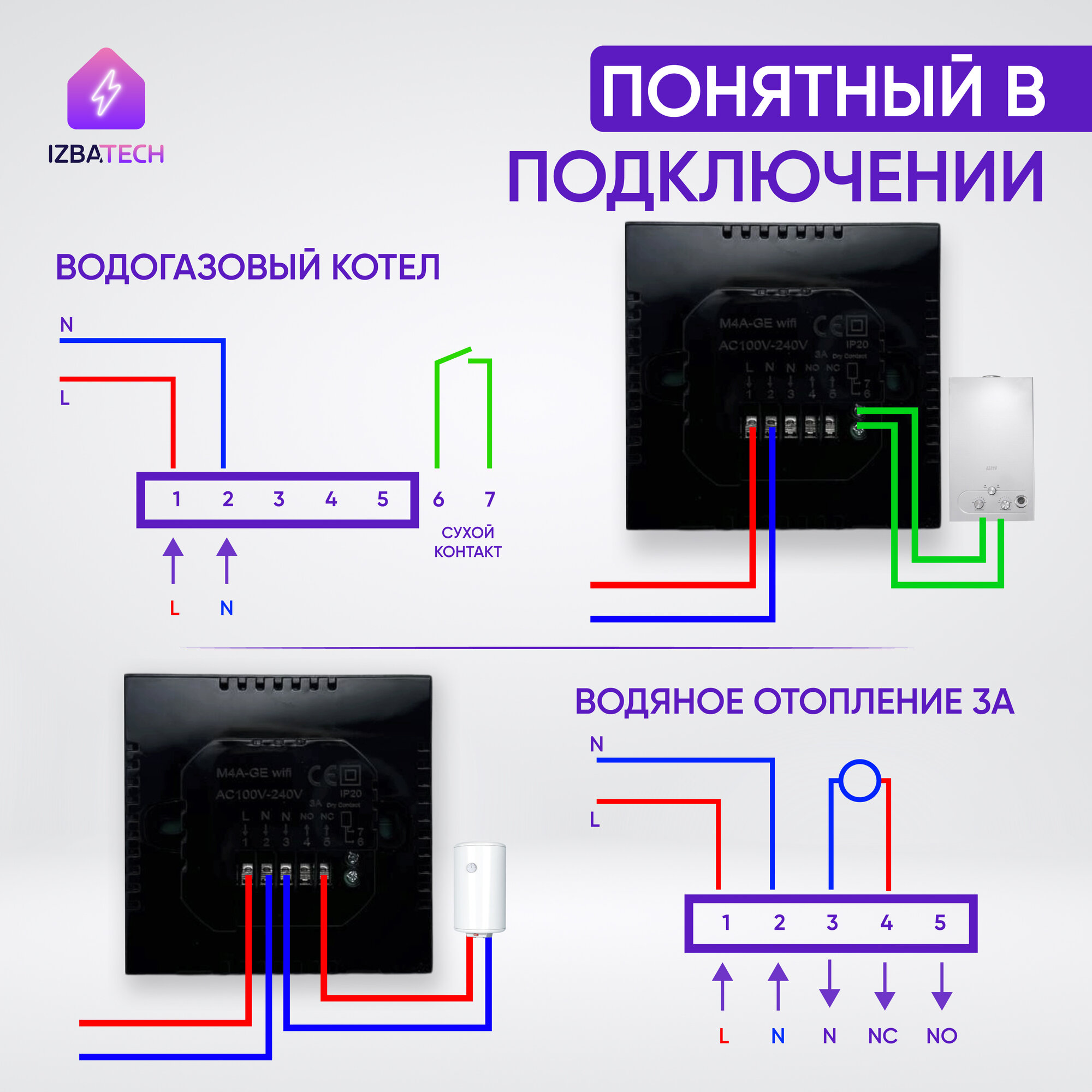 Умный терморегулятор для бойлера, белый для Яндекс Алисы на 3А с WIFI, сенсорный, с ЖК экраном