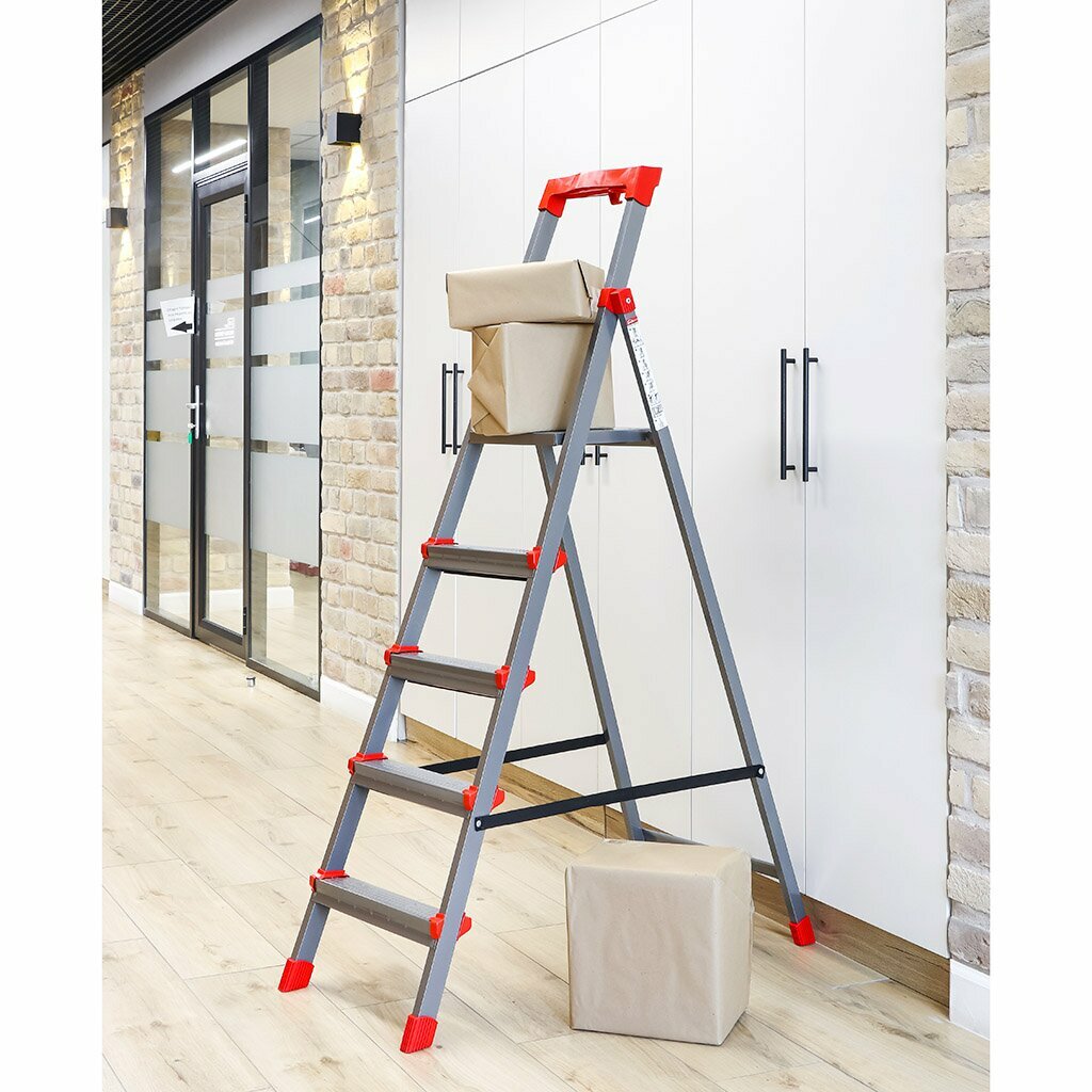 СохранитьСтремянка 1 секция, 5 ступеней, сталь, 1.2 м, 150 кг, с широкой ступенью, Nika, интересное: