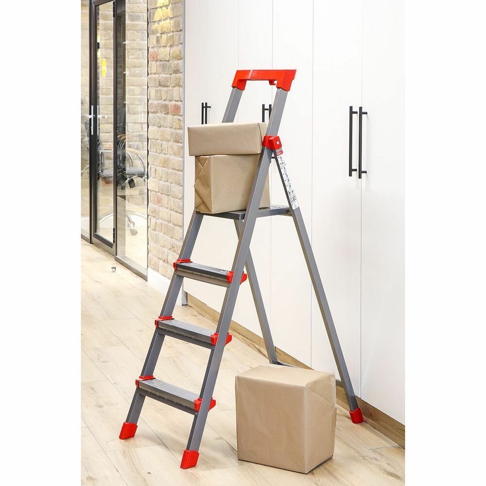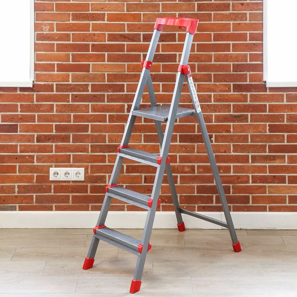 | Отзыв: | Поначалу сомневался, будет ли надёжно ощущаться стремянка без соединений внизу, но для домашнего использования оказалось ок. Пару-тройку недель прыгал по ней довольно активно, думаю, если бы была не очень надёжной - что-нибудь да залюфтило или начало болтать, но нет, в целом всё ок. Ступеньки не погнулись, да и в целом металические узлы не претерпели деформаций.