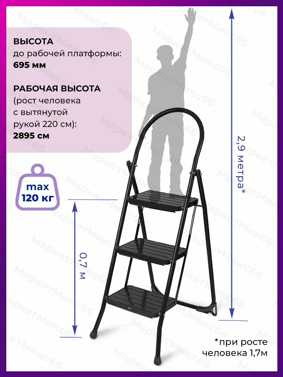 стремянка NIKA СМШ3/Ч с широкими ступенями черный