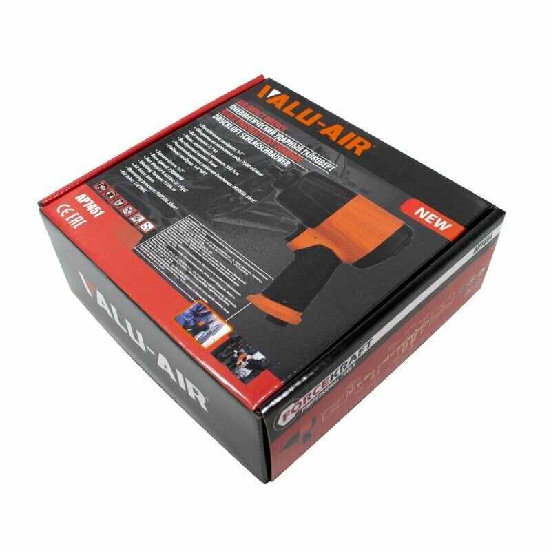 | Комплектация | Пневмогайковерт ударный в облегченном корпусе с реверсом и регулировкой усилия 1/2''(550Hм, 7500 об/мин,6.3bar,вес 2кг) |