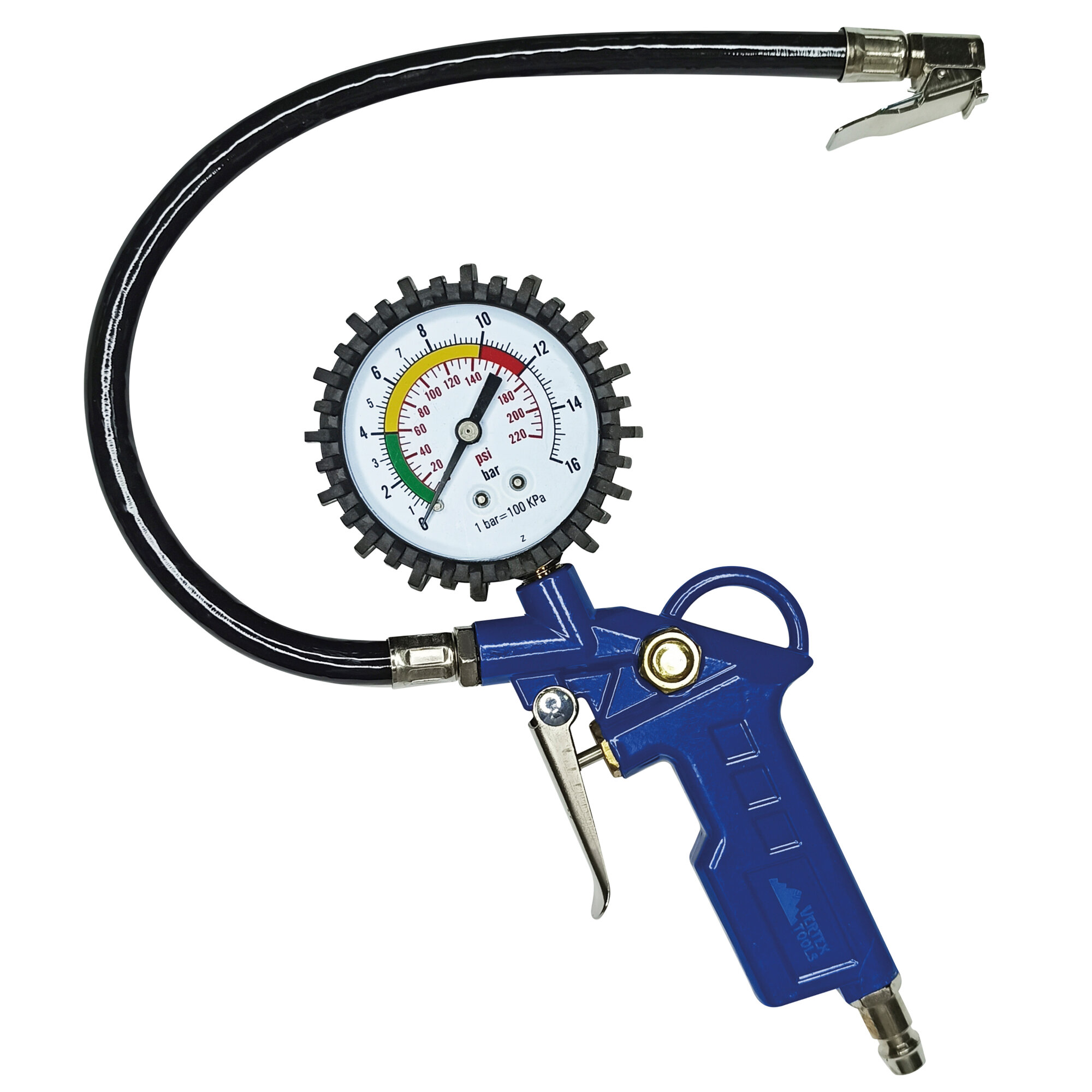 Купить Пневмопистолет VertexTools 9021, для накачки шин, с манометром, ударопрочный, синий