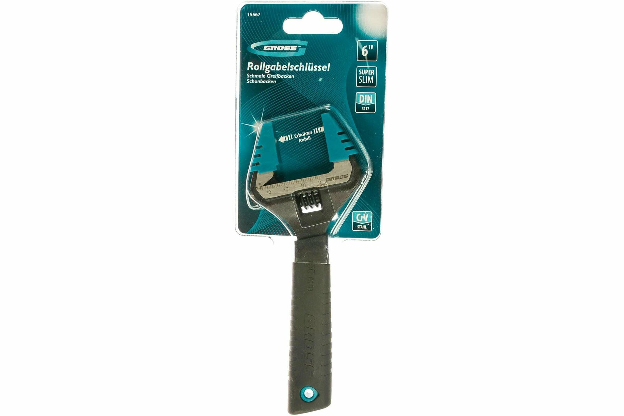GROSS Ключ разводной, 150 мм, CrV, тонкие губки, защитные насадки Gross, ( 15567 )