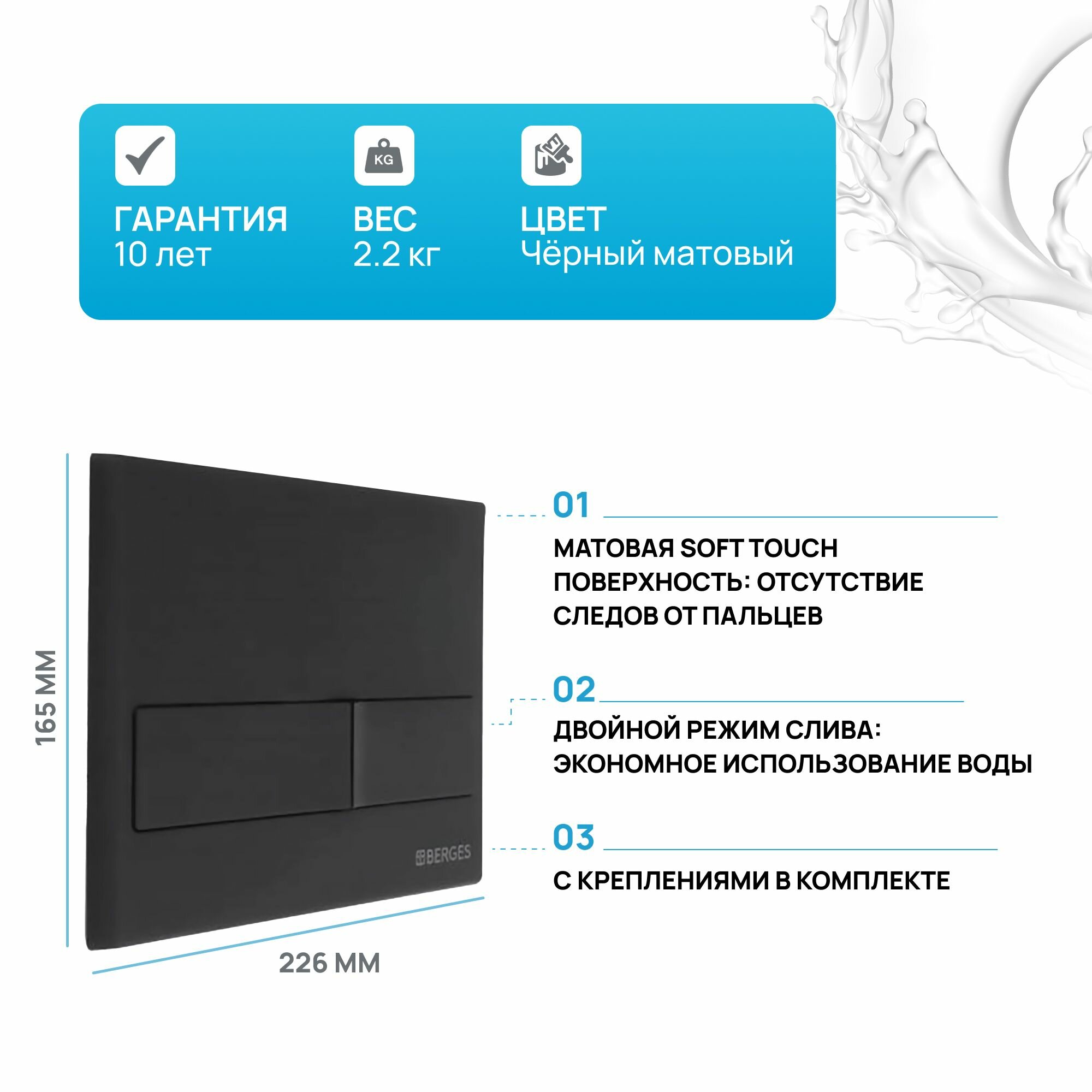 BERGES Кнопка для инсталляции NOVUM L5 Soft Touch черная 040015