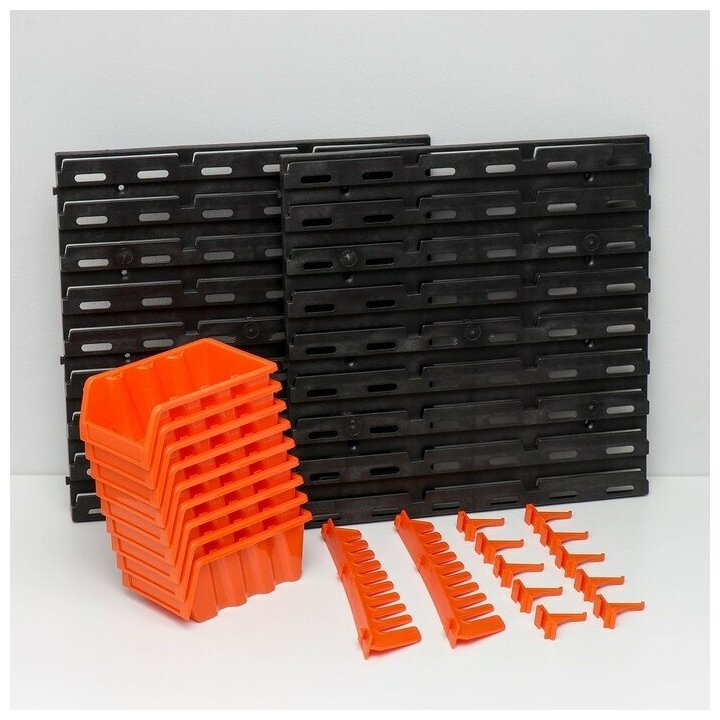 СохранитьНабор лотков для метизов / органайзер настенный для инструментов 740х170х375 мм IDEA, черно - оранжевый интересное: