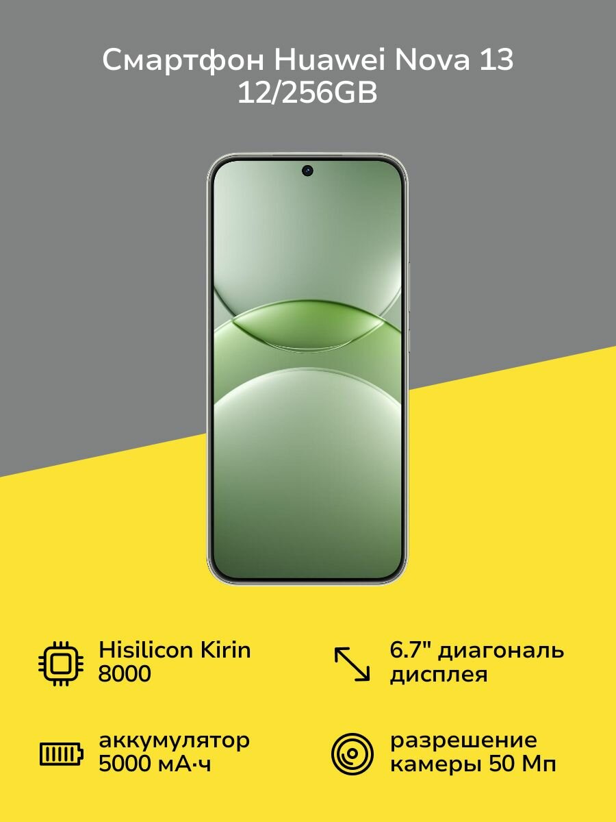 Смартфон Huawei Nova 13 12ГБ+256ГБ, экран 6,7", камера 50МП, зеленый