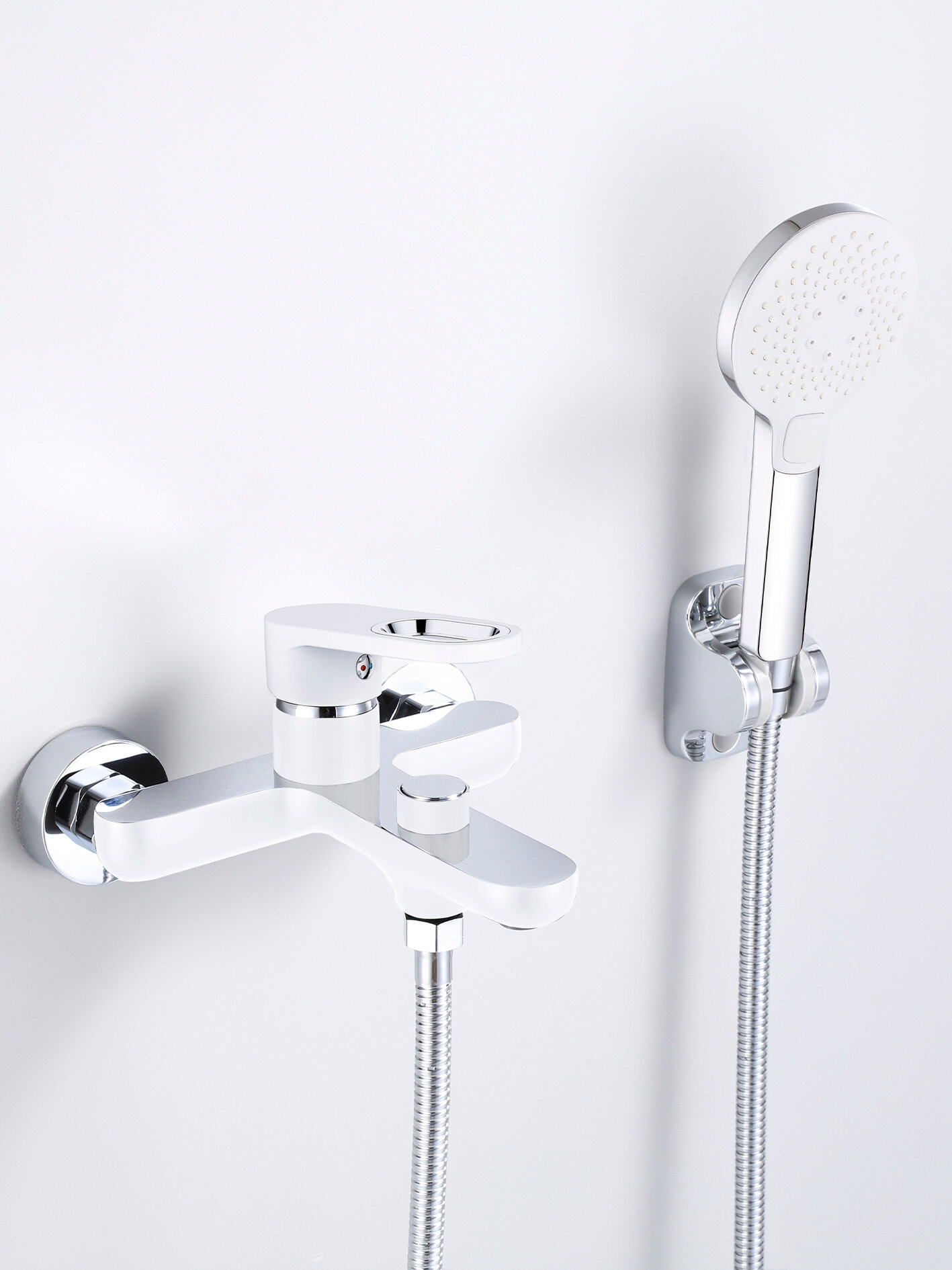 Смеситель для ванны и душа из латуни с лейкой и шлангом HANSEN HL30016 белый/хром