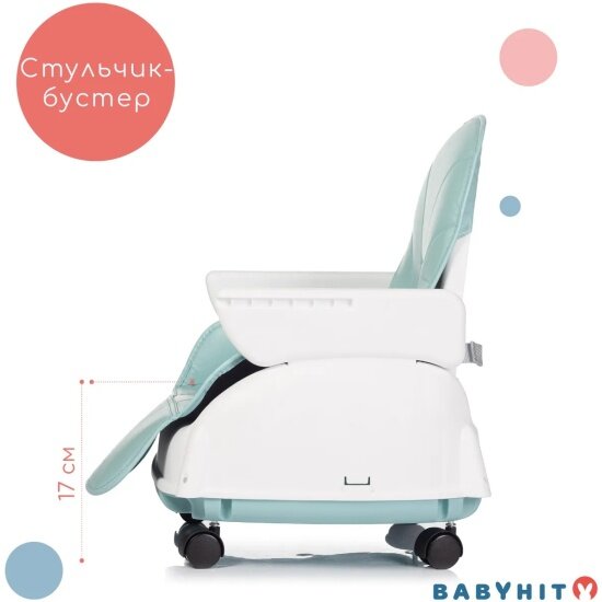 | Дополнительная информация | высота спинки: 34 см; стульчик-трансформер: классический стульчик для кормления, стульчик для творчества за детским столиком, стульчик-бустер на колесах; размер стульчика классического: 62 х 64 х 95 см (ДхШхВ), высота сиденья от пола: 65 см; размер стульчика для творчества: 52 х 51 х 70 см (ДхШхВ), высота сиденья от пола: 35 см; размер стульчика-бустера: 39 х 43 х 50 см (ДхШхВ), высота сиденья от пола: 17 см; чехол сиденья: полиуретан |