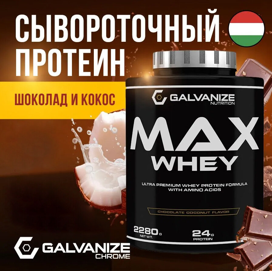 Купить Протеин сывороточный GALVANIZE Nutrition Max Whey, Шоколад-кокос, 2280 г
