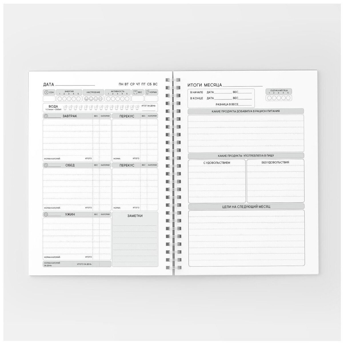 Дневник-планер питания А5 /на 4 месяца /160 страниц /ежедневник, блокнот для похудения/ авторский /Мужской №1 /diary_food_man_1