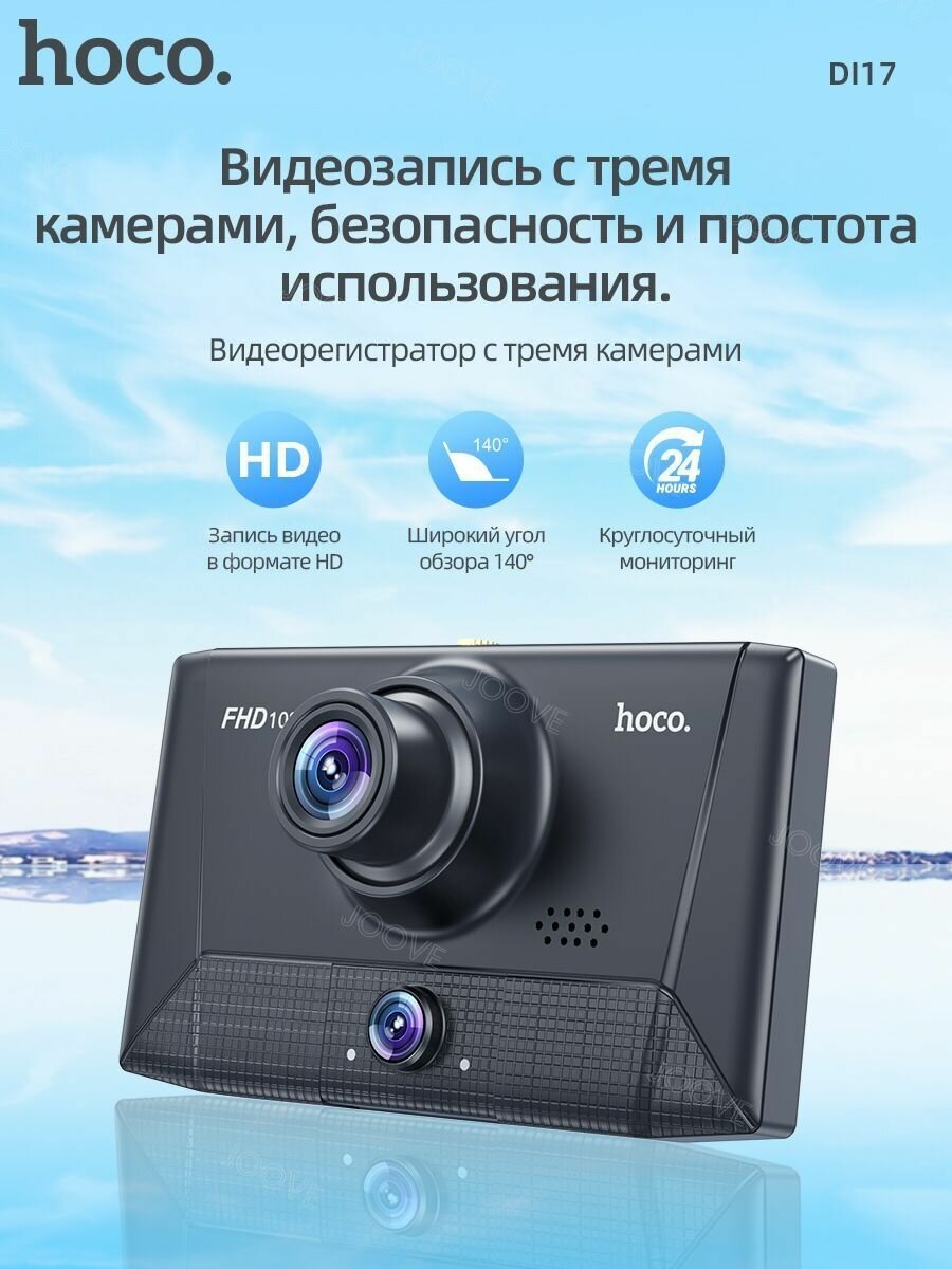 Видеорегистратор для автомобиля с тремя камерами Hoco DI17 интересное: