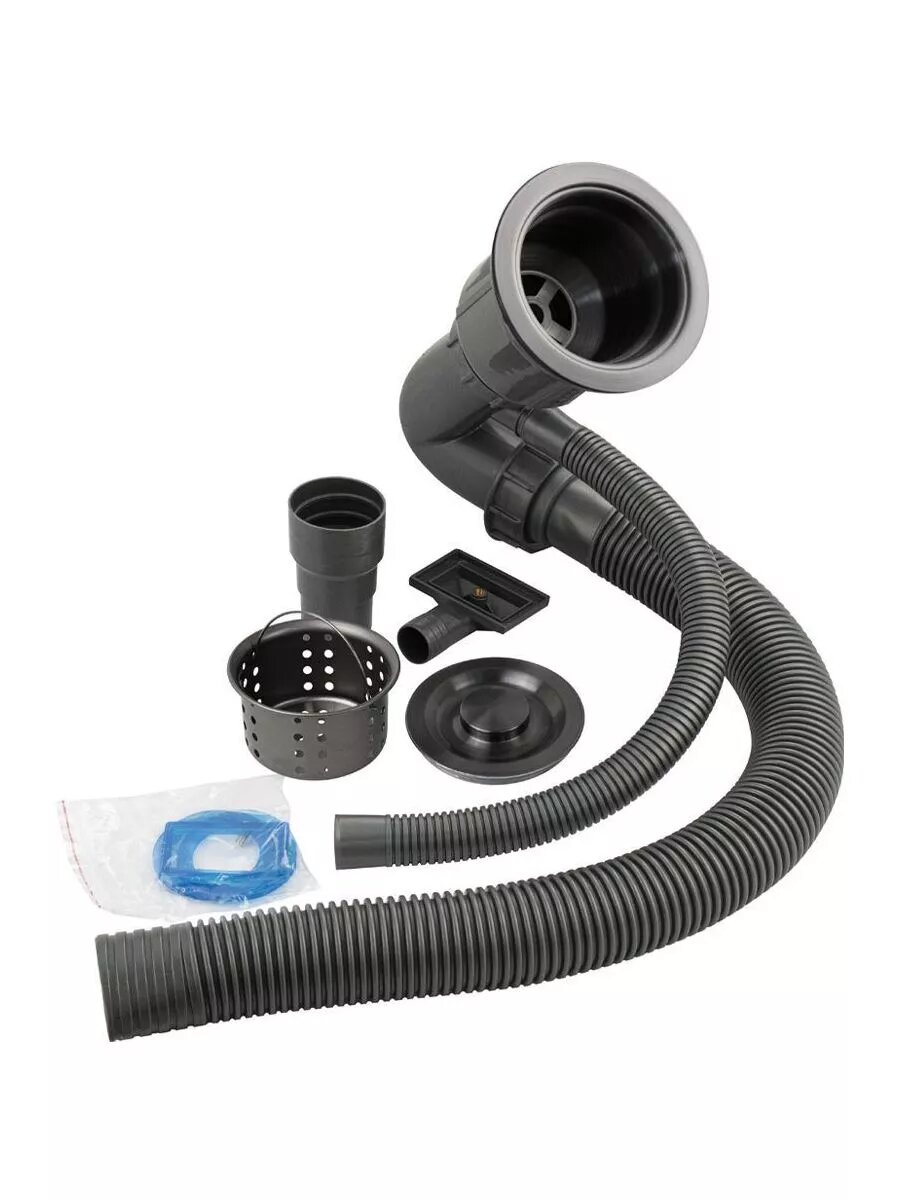 Мойка врезная 60х50 см, графит, толщина 3,0 х 1 мм, глубина 200 мм + большой сифон с переливом + корзина