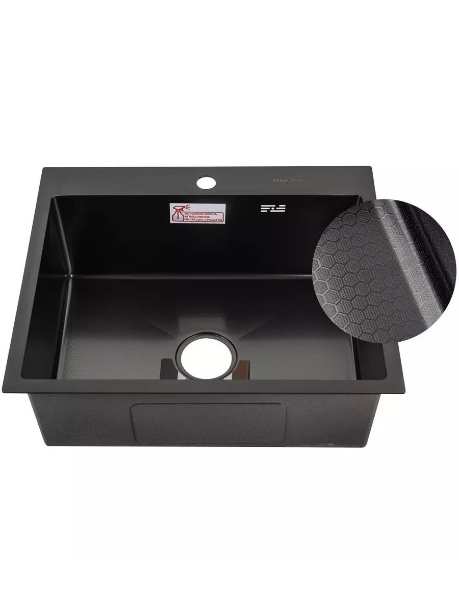 Fabia profi 60503dg мойка врезная 60х50 см графит, декор, толщина 3,0х0,8 мм, глубина 200 мм+большой сифон с переливом+корзина мойка врезная
