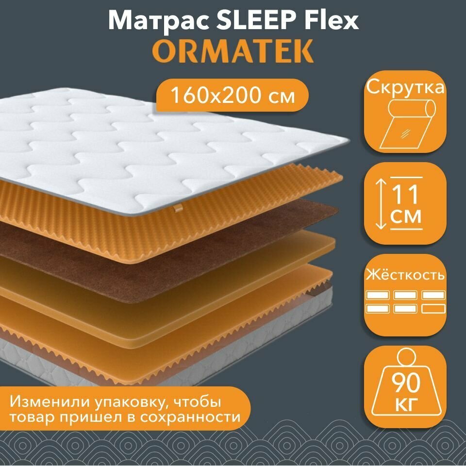 Купить Орматек Матрас SLEEP Flex, Беспружинный, 160х200 см, Двуспальный двусторонний анатомический тонкий матрас на кровать с массажным эффектом