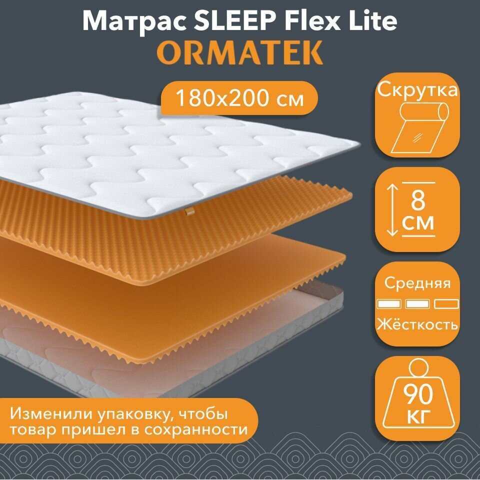 Купить Орматек Матрас SLEEP Flex Lite, Беспружинный, 180х200 см, Двуспальный двусторонний анатомический матрас на кровать c массажным эффектом