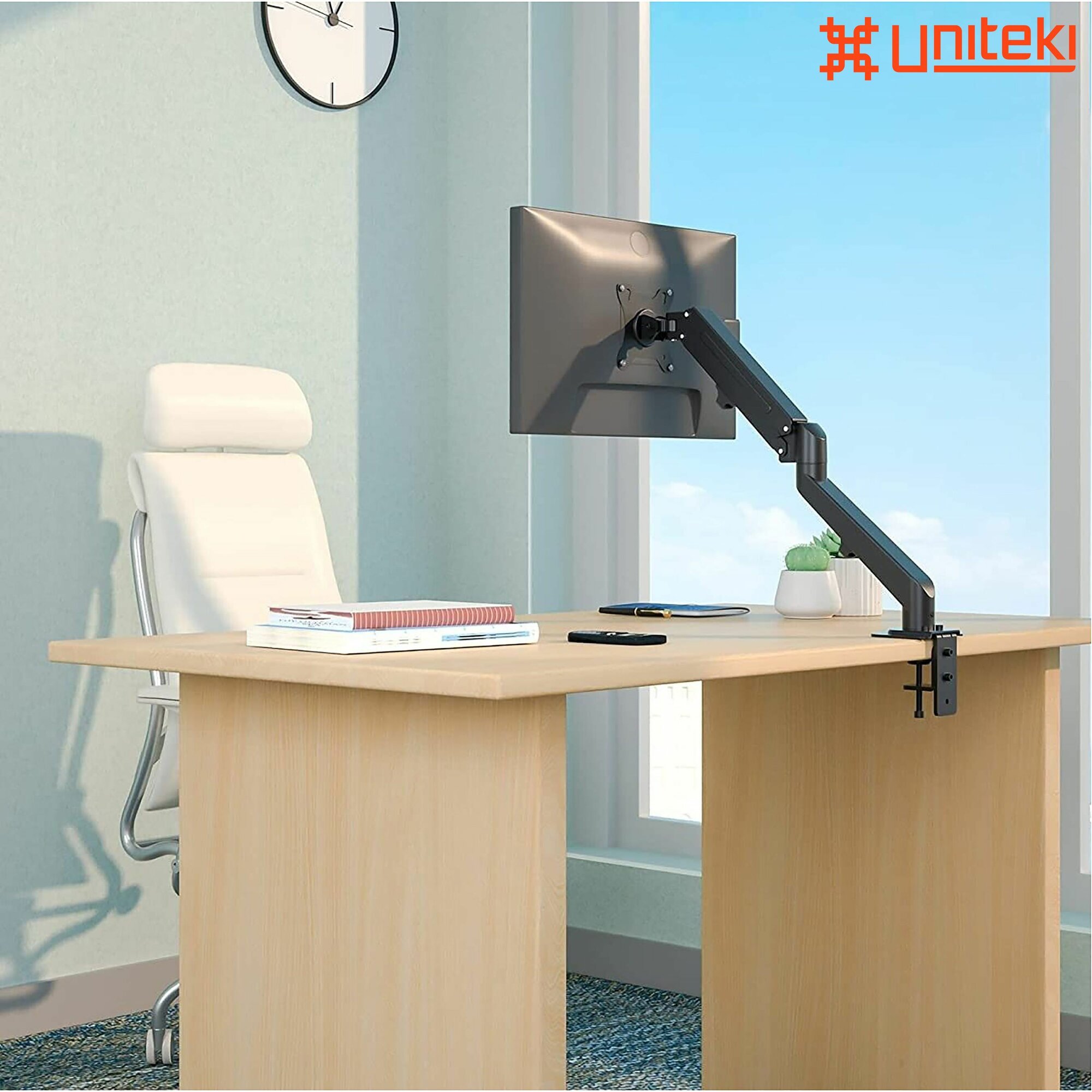Купить Крепление, кронштейн для монитора на стол со струбциной, наклонно поворотный UNITEKI FMGT81 черный газ лифт диагональ 17-32 дюймов, подставка для монитора
