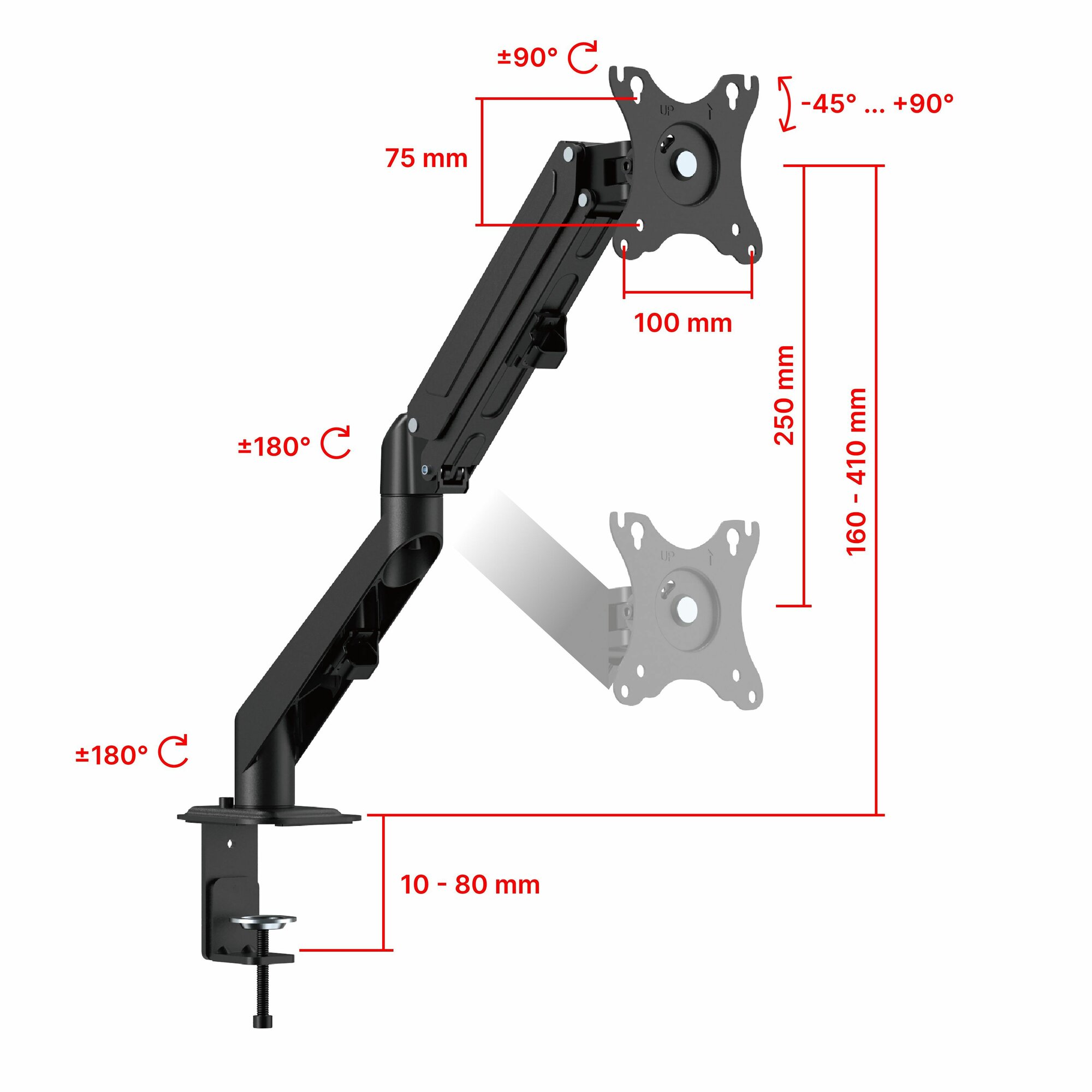 Кронштейн для монитора UniTeki FMGT81 (на стол к столу) со струбциной, наклонно-поворотный, газ лифт, диагональ 17-32 дюймов