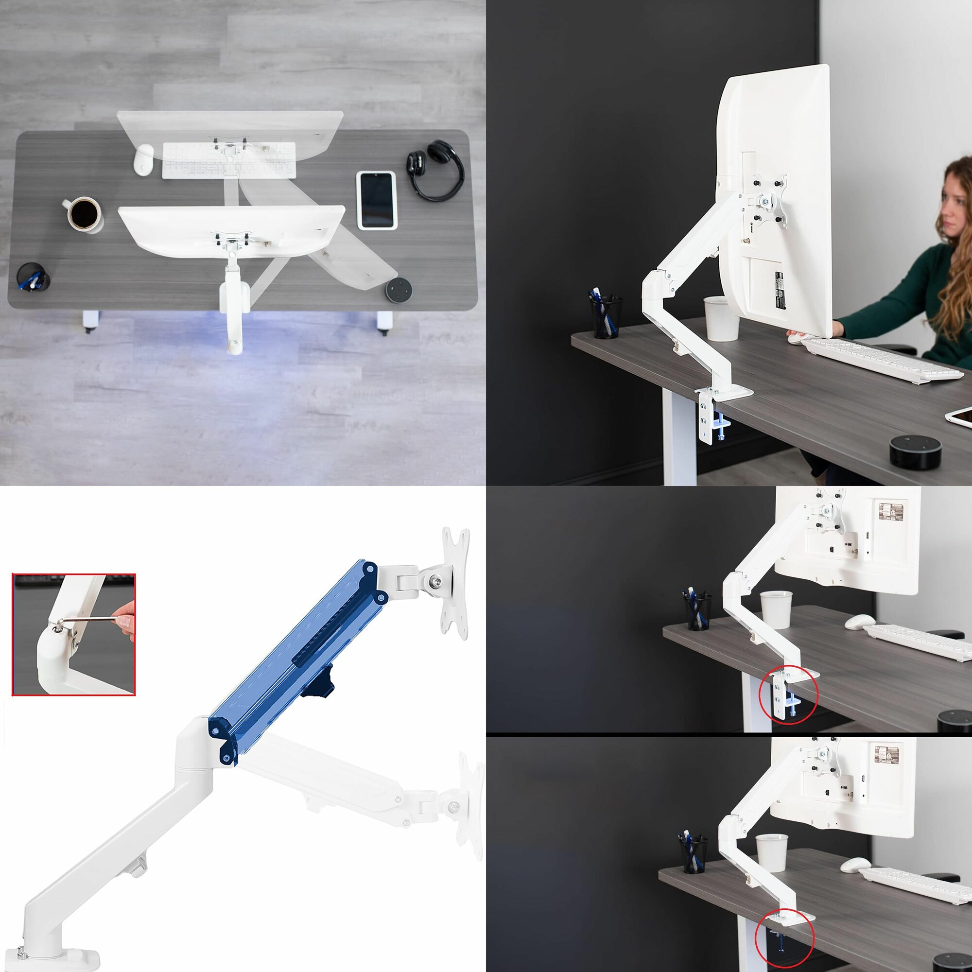 Купить Крепление для монитора, кронштейн к столу на струбцине газ лифт диагональ 17-32 дюймов UNITEKI FMGT81W белый, наклонно поворотный, с вылетом