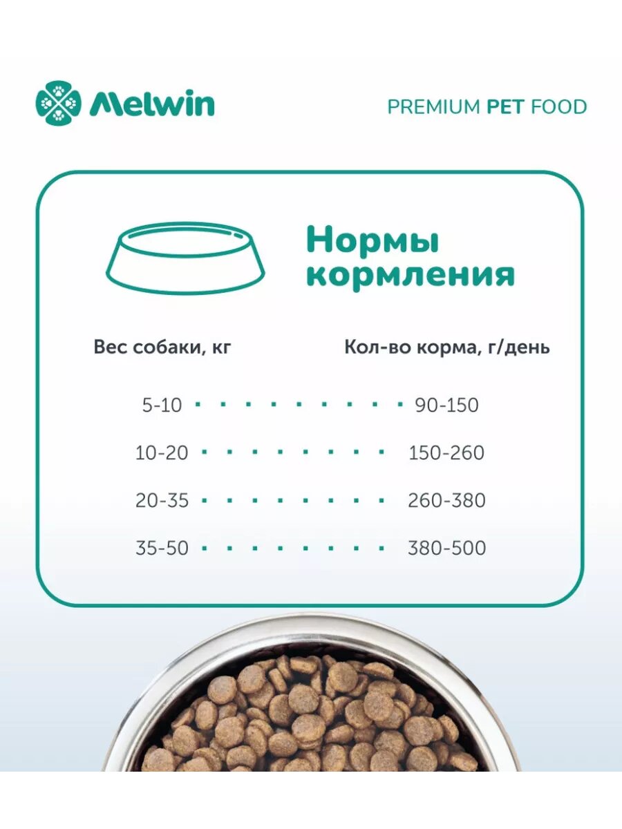 Melwin сухой корм для собак от 1 до 7 лет с индейкой и рисом, 2,5 кг