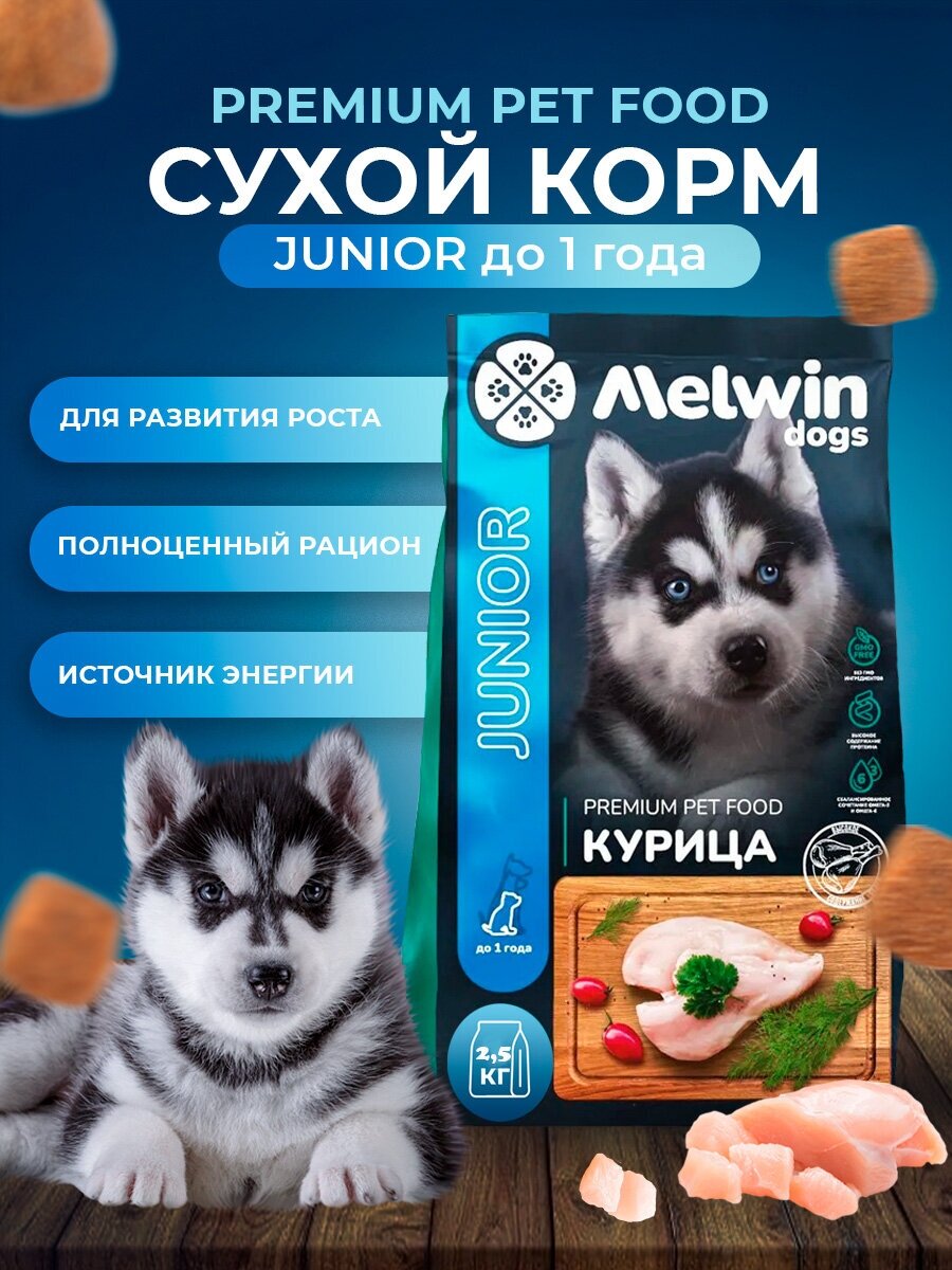 Сухой корм Melwin для любых щенков до 1 года, курица 2,5 кг