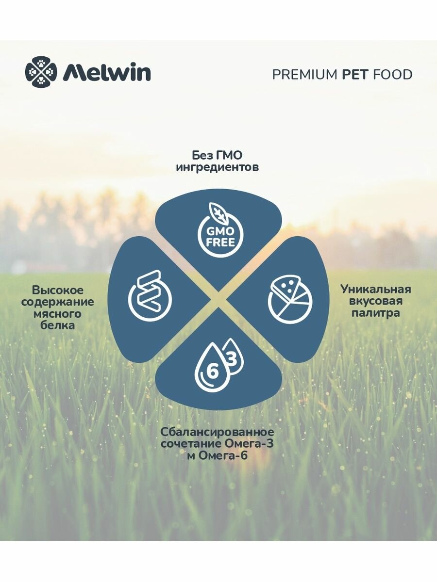 Melwin сухой корм для собак от 1 до 7 лет с индейкой и рисом, 2,5 кг
