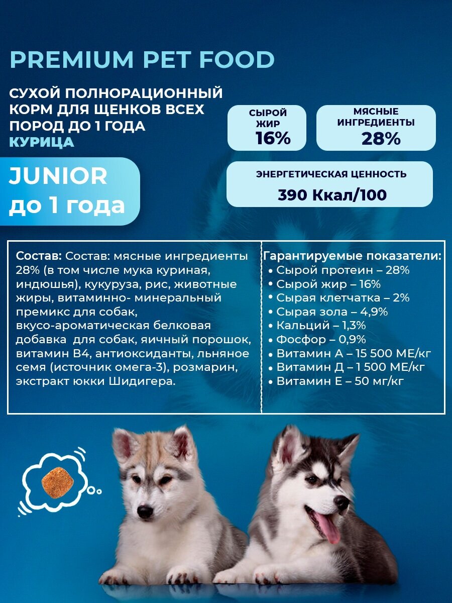 Сухой корм Melwin "Курица", для щенков всех пород до 1 года, премиум, 1 кг