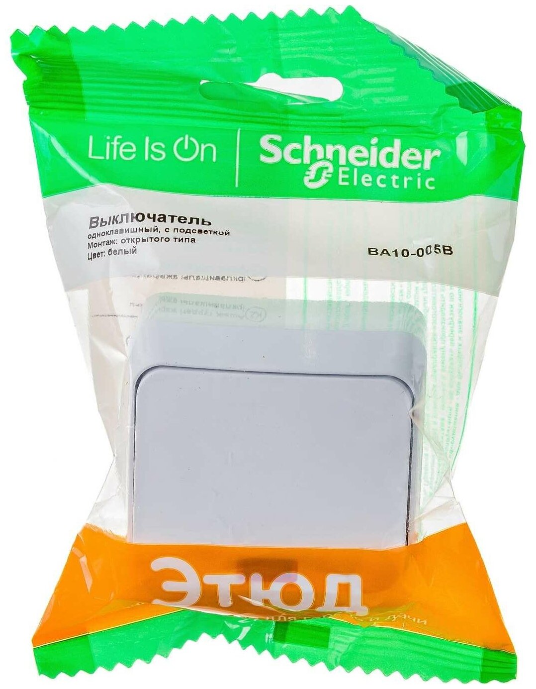Выключатель 1-клавишный этюд, с подсветкой, открытый монтаж, белый. BA10-005B Schneider Electric