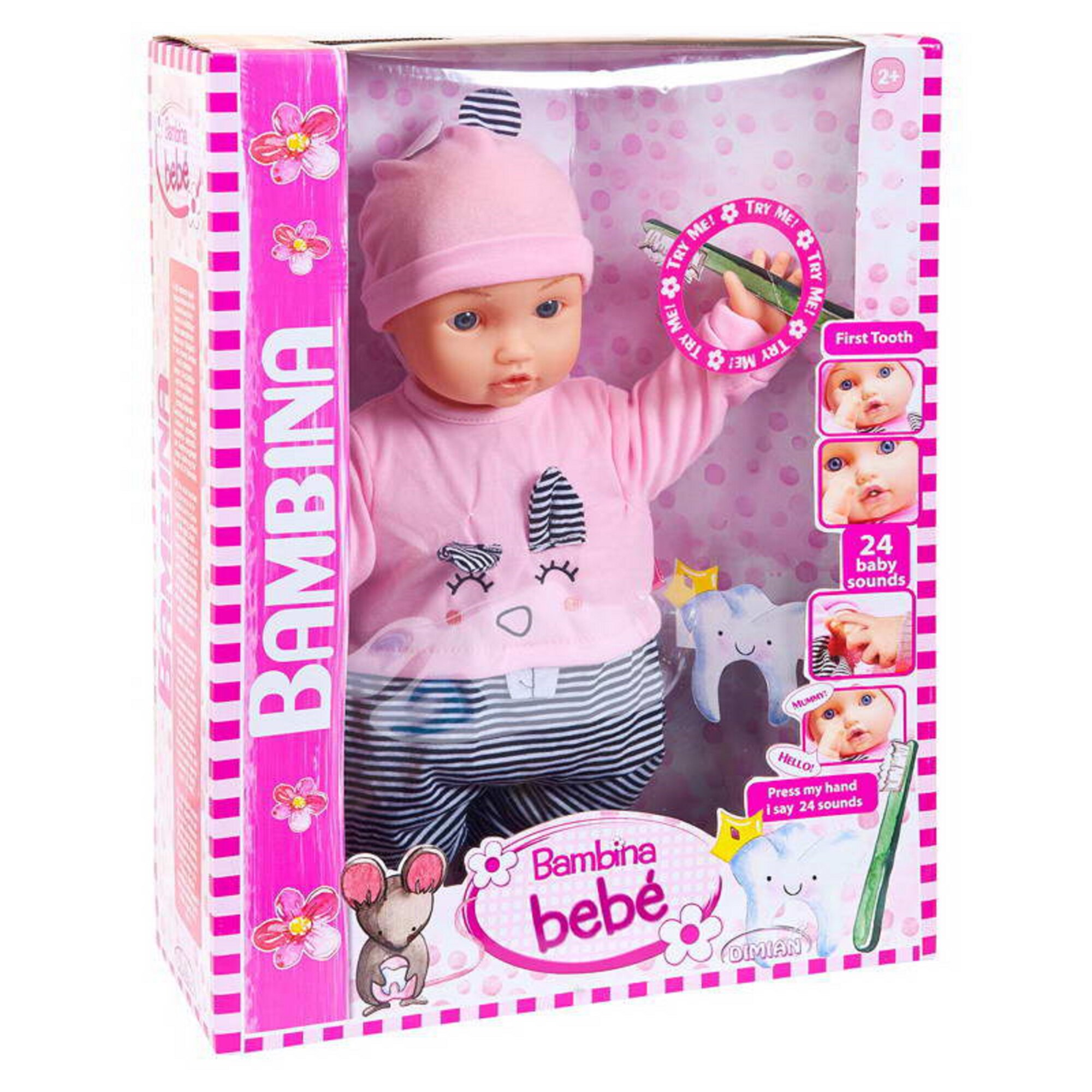 Купить Кукла DIMIAN Bambina bebe пупс мой первый зуб звуковые эффекты 46 см