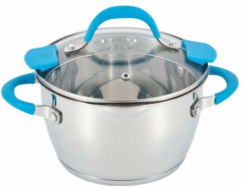 Кастрюля 3.4 л из нержавеющей стали со сливом в крышке Barton Steel BS 2117-20 BL, голубая ручка