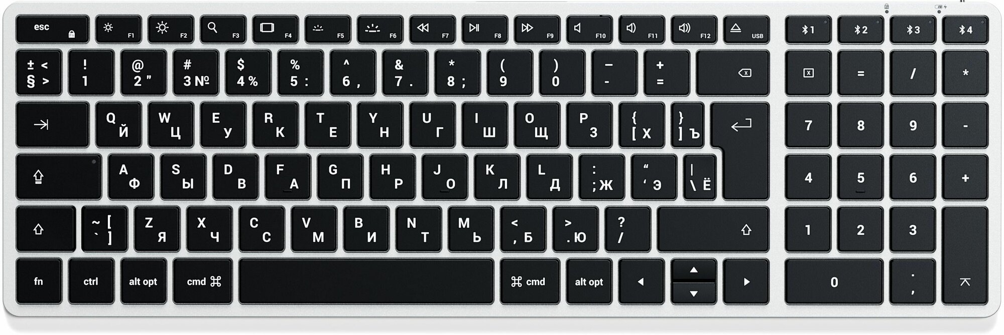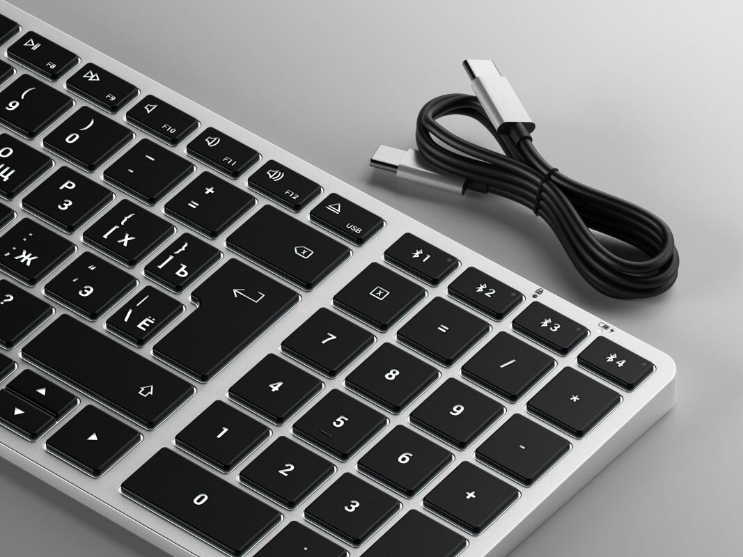 Клавиатура беспроводная Satechi Slim X2 Bluetooth Backlit Keyboard (ST-BTSX2S-RU) Белая подсветка, numpad, Серебристый