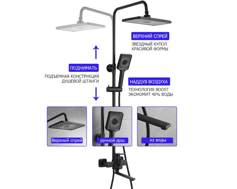Душевая стойка со смесителем и тропическим душем Frap F2471-6 черный, латунь