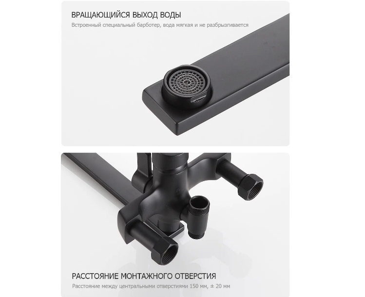 | Особенности | S-образные эксцентрики / аэратор / держатель душевой лейки / держатель лейки |