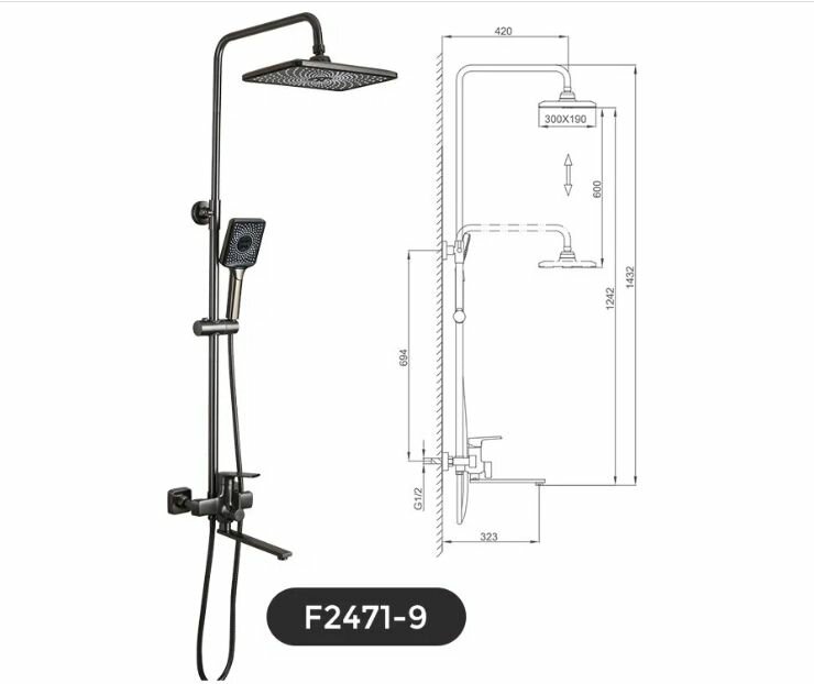 Душевая стойка FRAP F2471-9 оружейная сталь