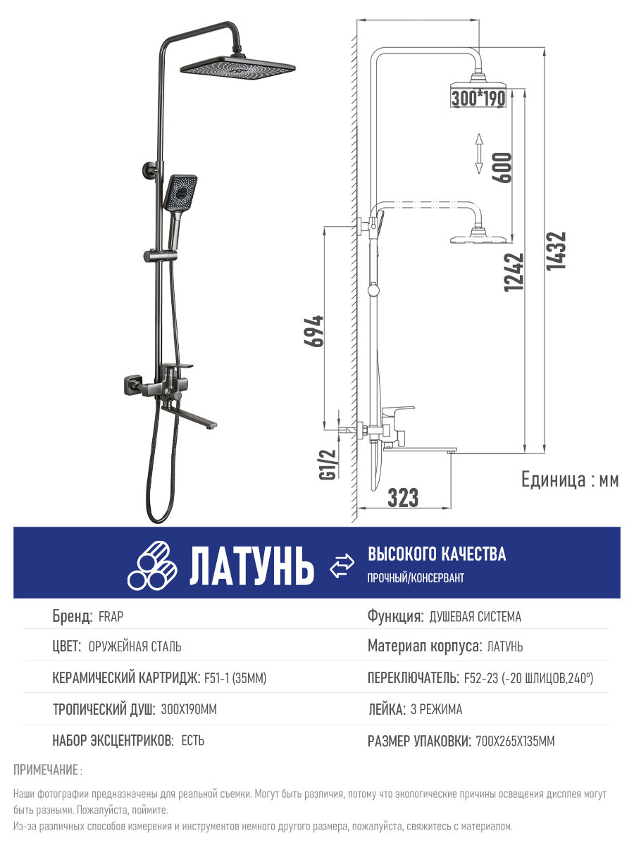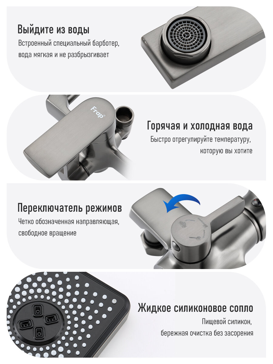 СохранитьДушевая система с тропическим душем Frap F2471-9 латунь оружейная сталь интересное: