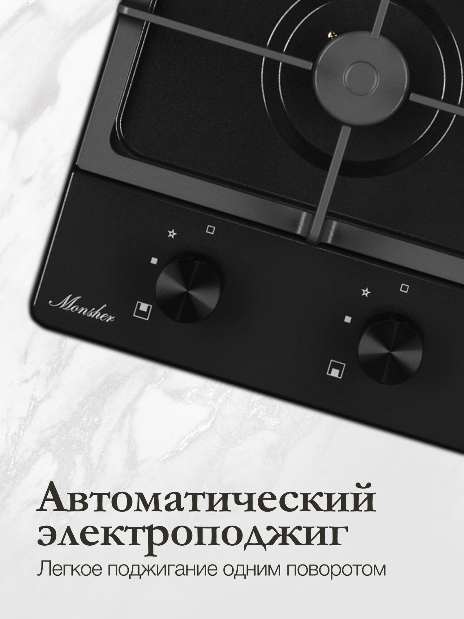 Встраиваемая газовая варочная поверхность Домино Monsher MSG 36 Noir (Модификация 2024 года)
