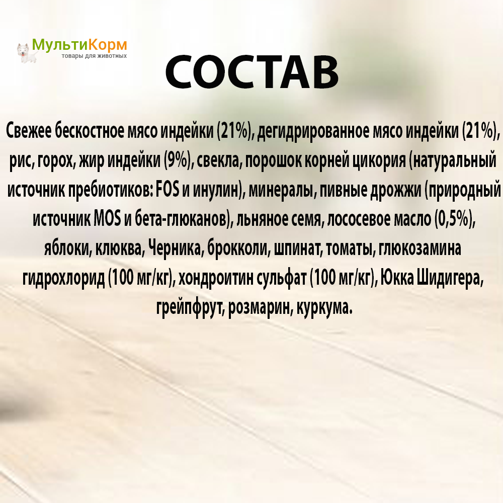 из мясного только индейка в составе. Собака ест с удовольствием |