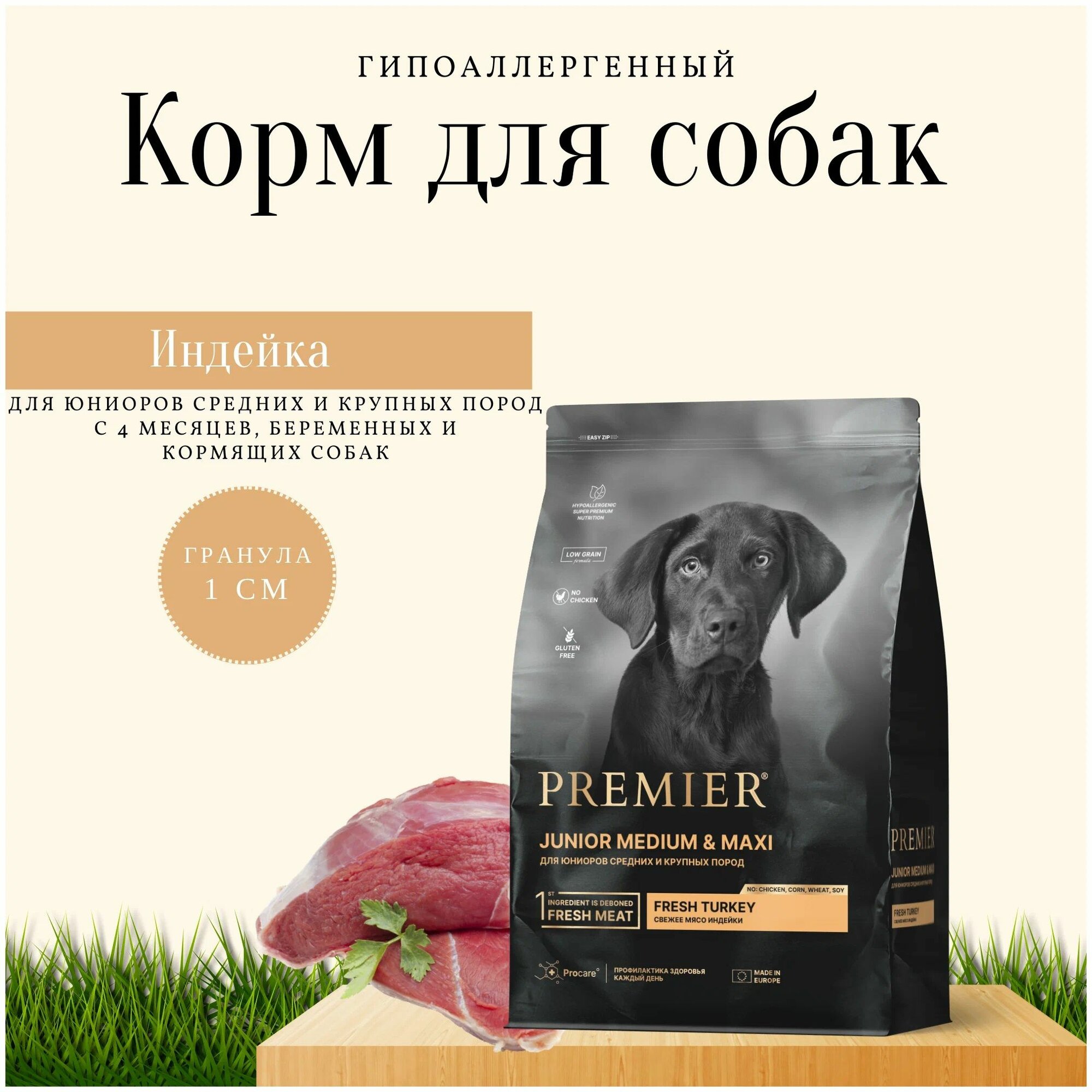 Сухой корм для юниоров средних и крупных пород с 4-х месяцев, беременных и кормящих собак,3 кг Premier Dog Turkey JUNIOR Medium&Maxi, супер-премиум, гипоаллергенный