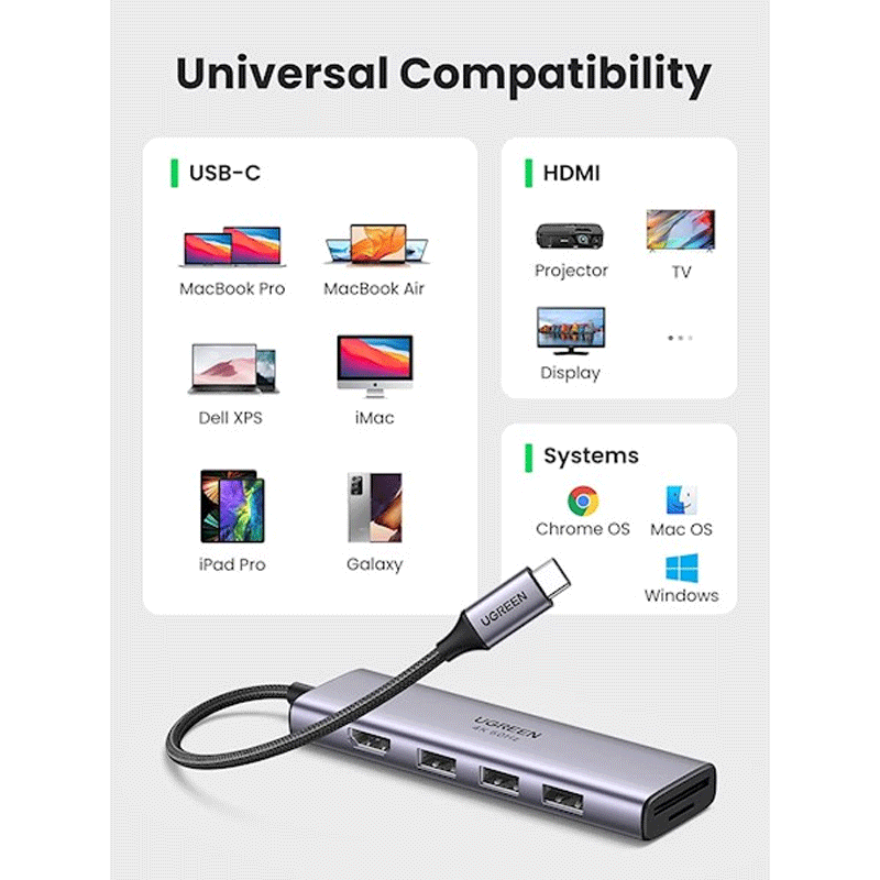 Адаптер Ugreen CM511 (60383) Usb-c Multifunction Adapter - Space Grey .