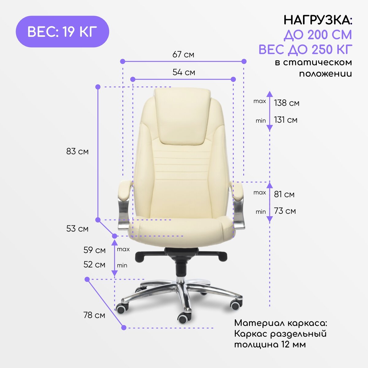 Кресло компьютерное офисное Т-9923 для руководителя, обивка: искусственная кожа, цвет: слоновая кость