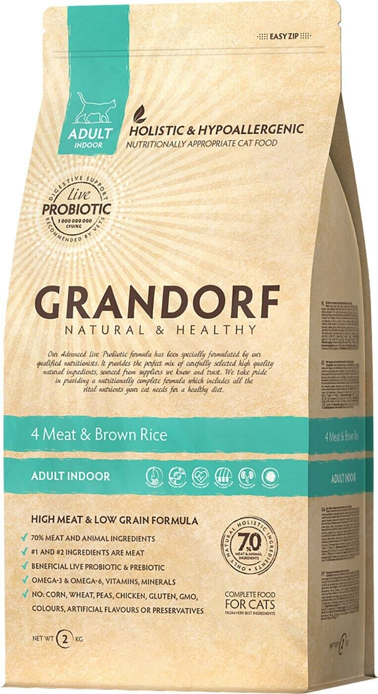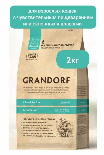 GRANDORF 4 Meat Adult Indoor, 2 кг (сухой корм для кошек 4 мяса: индейка, утка, кабан, ягненок)