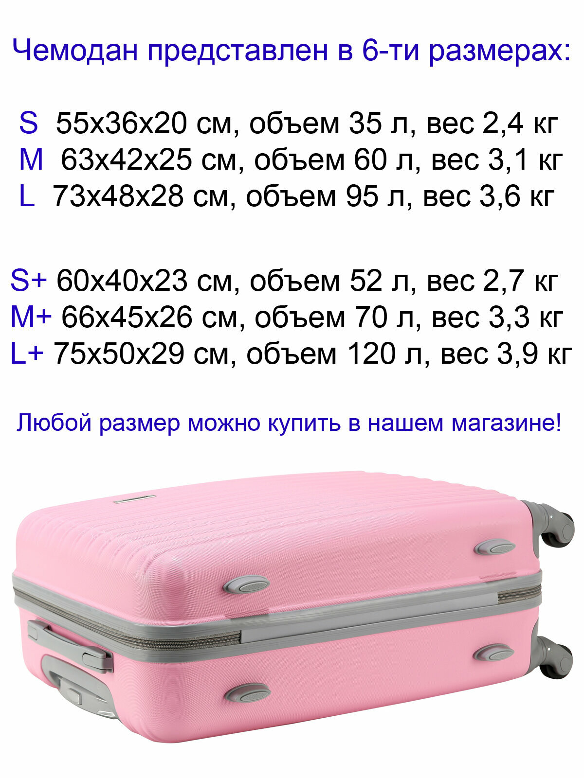 | Минусы: | Заказала два чемодана одного размера s а пришли один чуть больше другого |