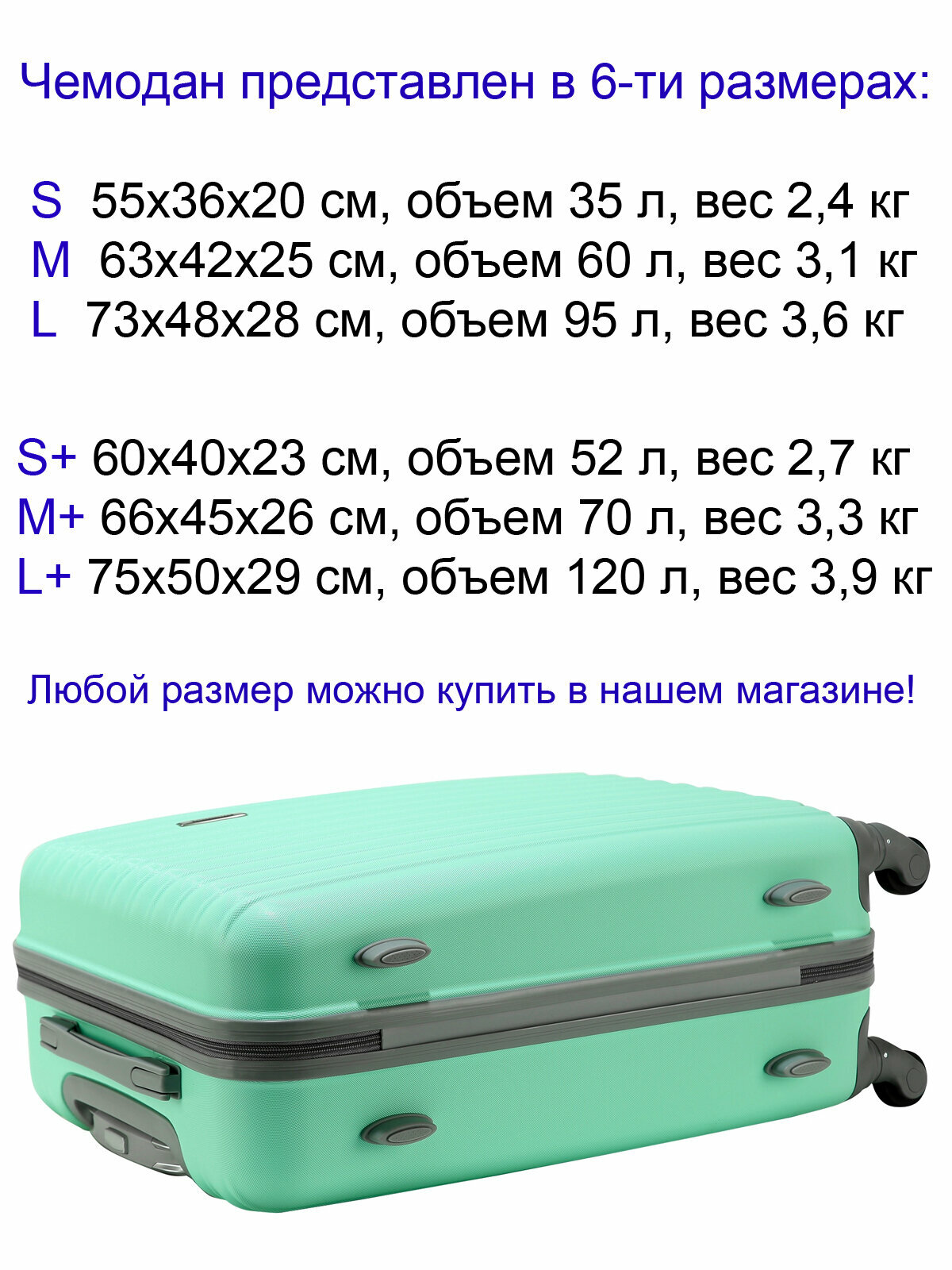| Отзыв: | покупала 2 чемодана разных цветов размера S... черный стандартная s, мятный меньше размером. |