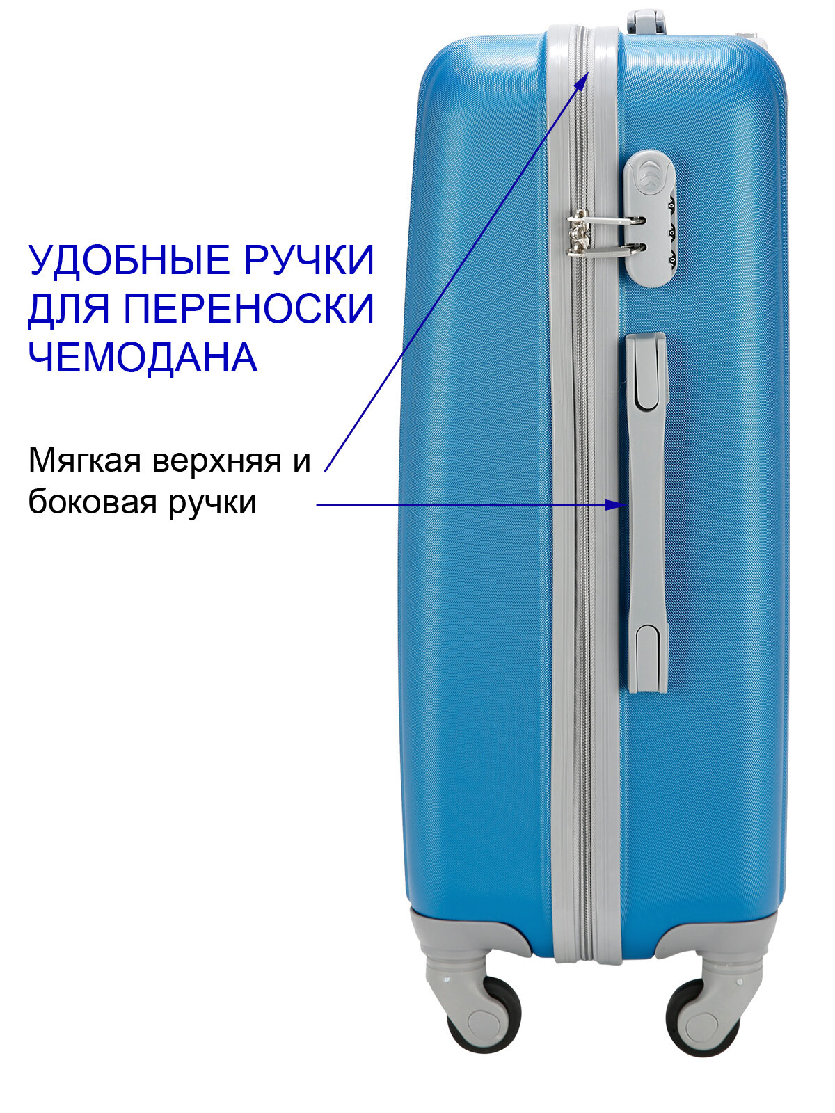 | Особенности конструкции | рифленая поверхность, колеса 360,ручка чемодана меняет высоту,замок с кодом |