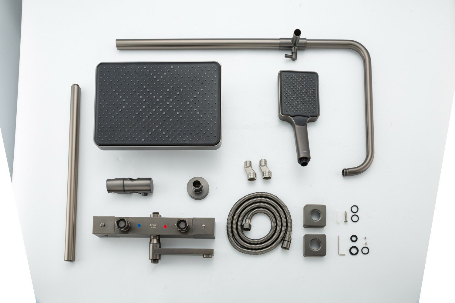 Душевая система с термостатом и тропическим душем Frap F24007-9 цвет оружейная сталь